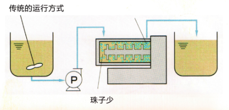 ![]() 循環(huán)操作只需一個或兩個攪拌桶實現(xiàn)循環(huán)砂磨,而且攪拌桶內(nèi)粗顆粒會快速沉淀而優(yōu)科學(xué)入砂磨腔砂磨。 |